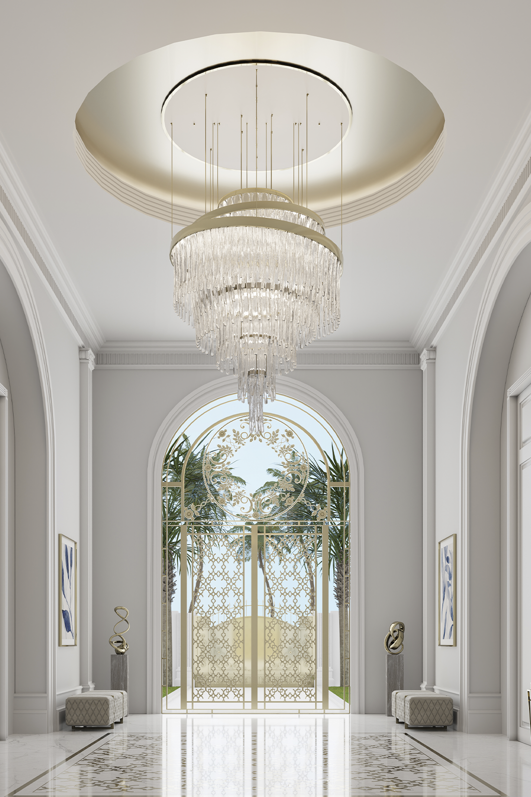 The inspiration for the Babel Chandelier is still a myth, but the elegance present in every crystal of this luxury chandelier is real. We brought the fantasy of detail to reality through these magnificent and lush crystals. Made with gold-plated brass and crystal glass, this powerful chandelier will make a statement in any entryway or hotel lobby.