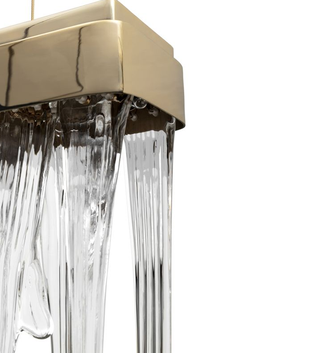 While the inspiration for the Babel II Suspension Lamp remains a myth, its elegance and attention to detail are a dream come true. Made with crystal glass and gold-plated brass, this suspended lighting fixture is ideal for residential or hospitality projects. Its unique shape allows the creation of exquisite lighting installations by combining multiple elements.