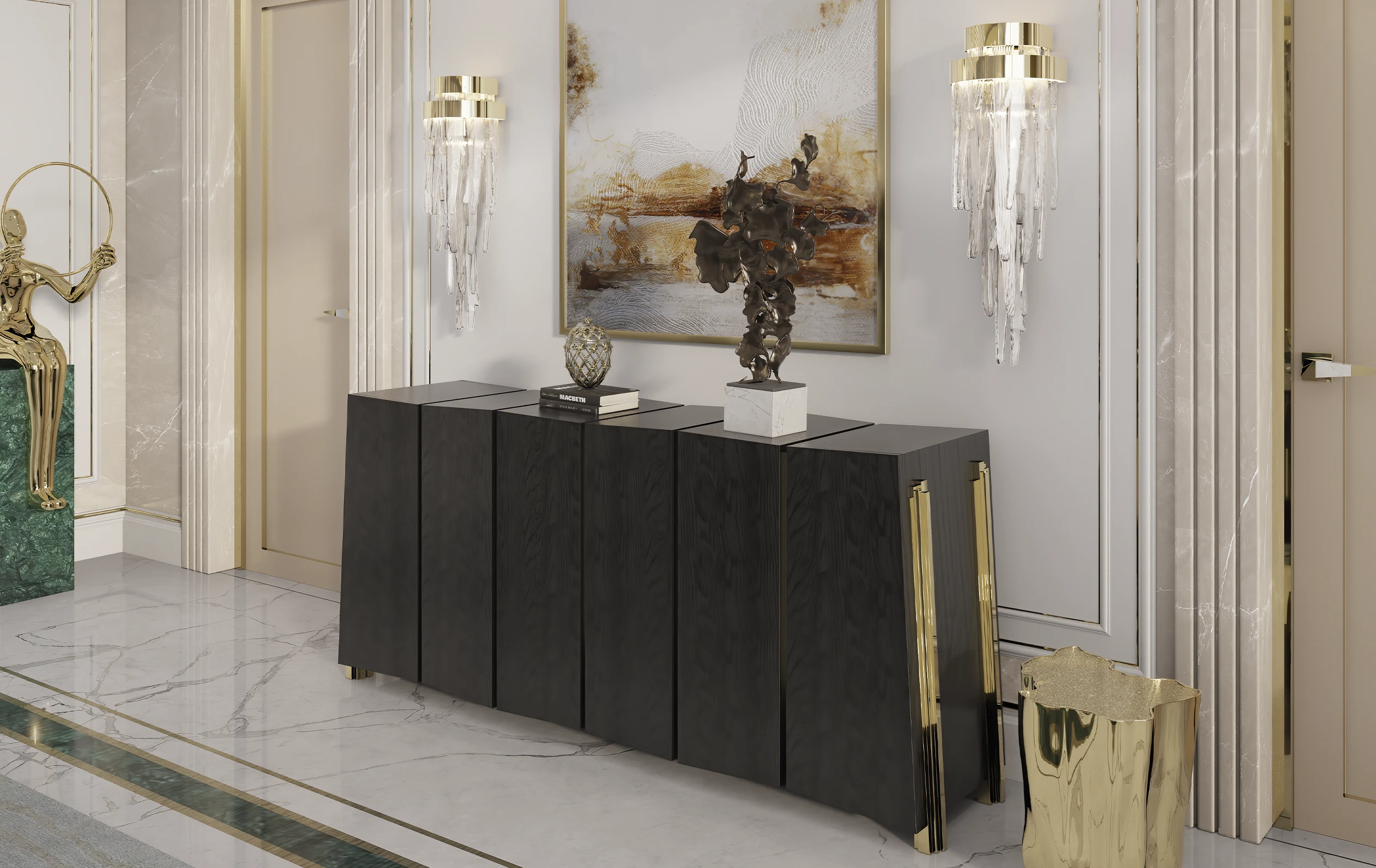 The Babel Wall Lamp is a unique and exquisite lighting fixture that adds a touch of classical appeal to any interior design style. The craftsmanship of the crystal work shines through in the circular surfaces, where smooth, glamorous shades are reflected and held by a gold-plated brass ring. With its unmistakable presence, this wall light creates a sublime ambiance that is perfect for the most luxurious projects.
