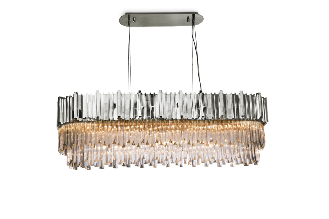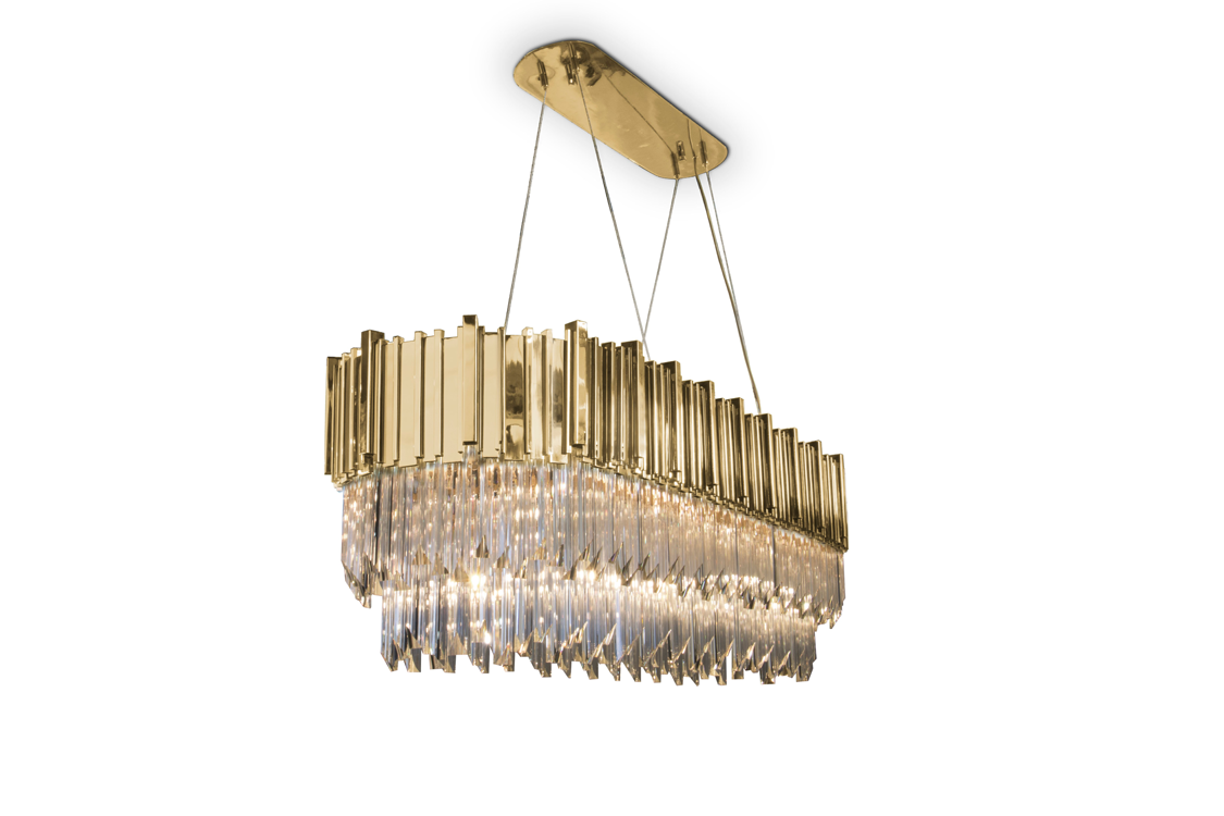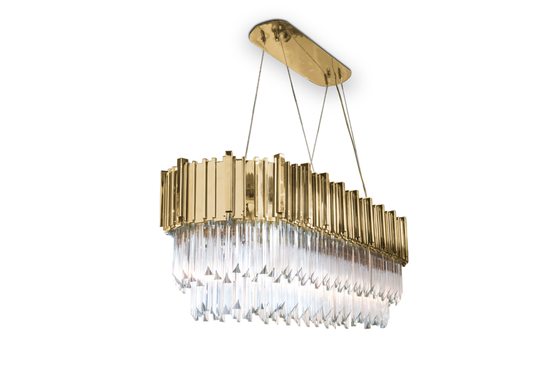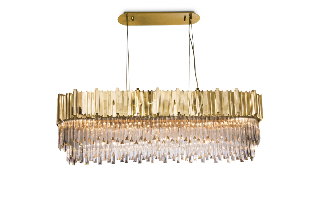 Created with crystal glass and gold-plated brass, this magnificent suspension lamp is capable of giving a luxurious and glamorous look to any space. The Empire Snooker Suspension Lamp is a jewelry piece for any interior, creating a sophisticated and unique atmosphere. Perfect for modern dining rooms or to place above billiard tables.
