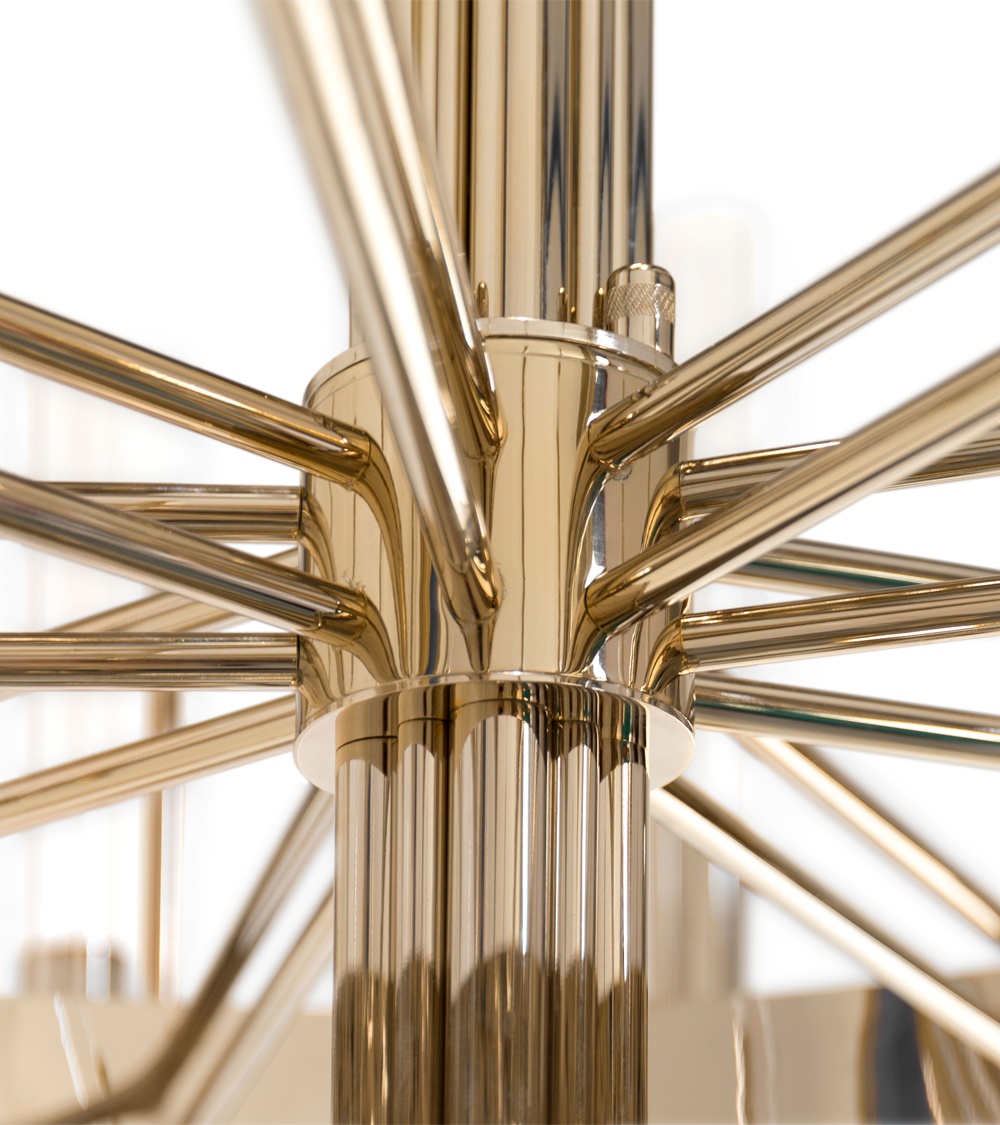 The Gala II Suspension Lamp is a modern take on an ancient design style inspired by the fantastic palatial apogee. Its design is the perfect addition to any luxurious hospitality or residential project due to its unique shape and high-quality materials, such as gold-plated brass and crystal glass. The perfect suspended light for a prestigious ambiance in a grand foyer or above a dining table.