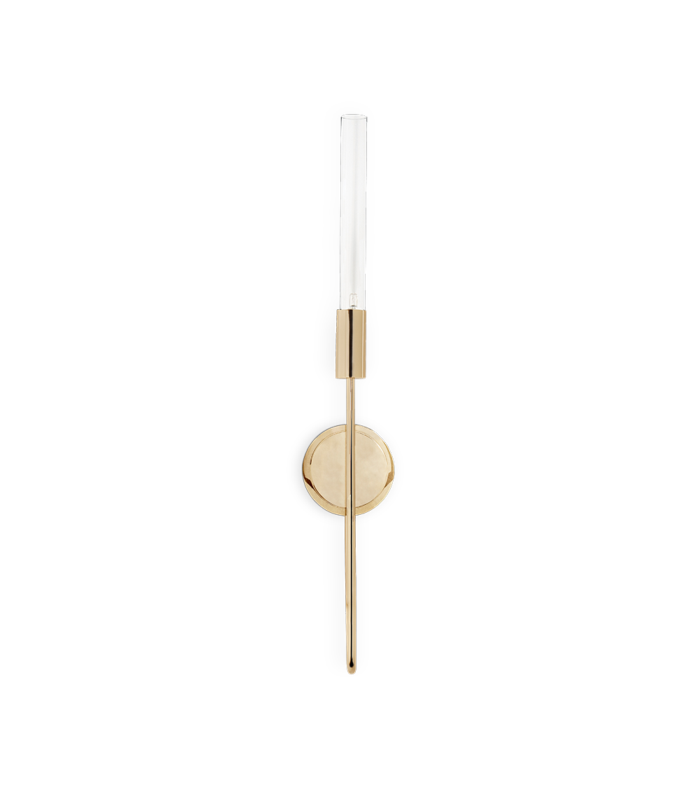 With a minimalist design, the Gala Wall Lamp combines timeless palatial influences with modern brass lines and crystal lighting, creating a versatile piece that will give an elegant edge to any ambiance. A graceful work of art that celebrates design history.