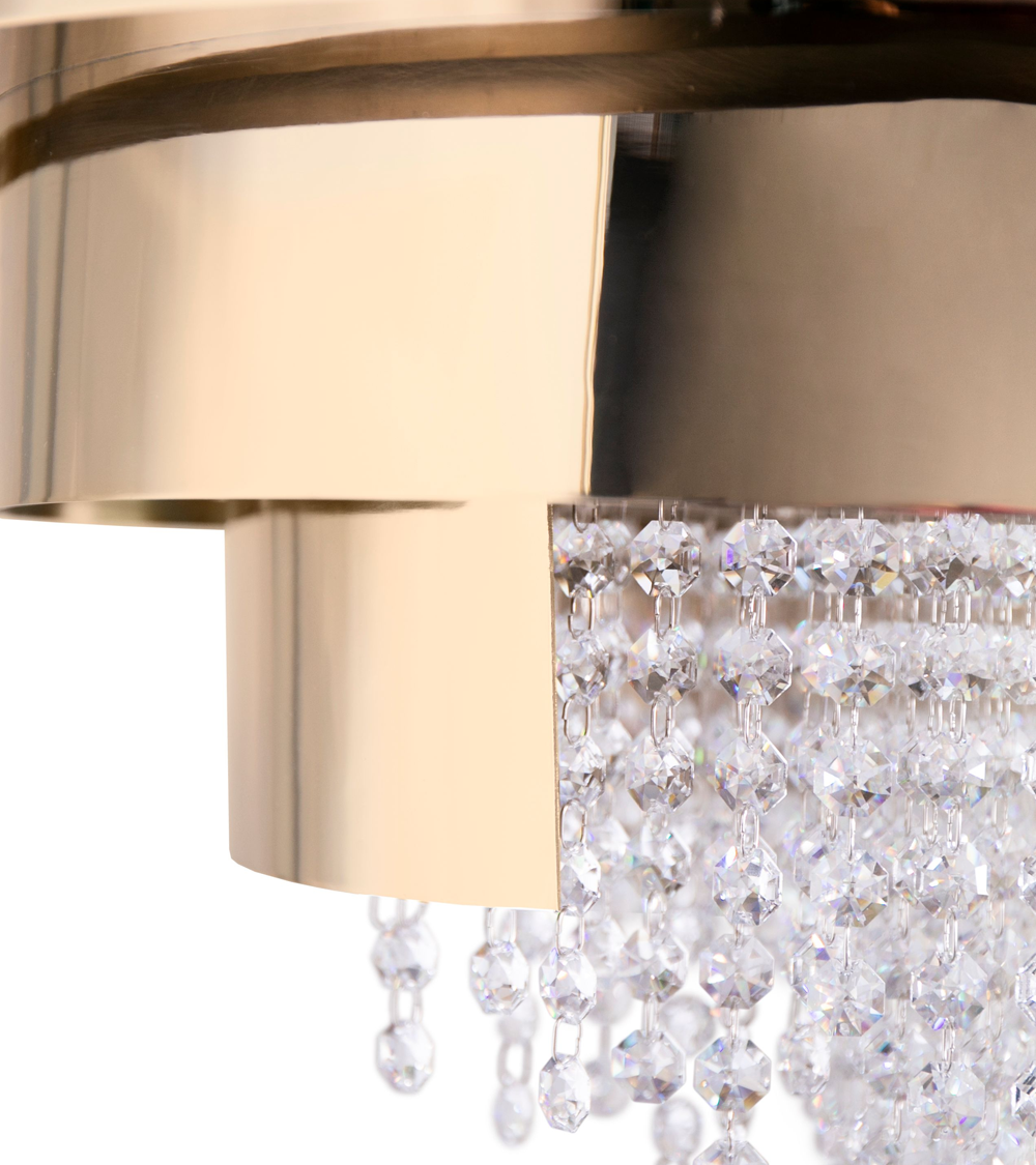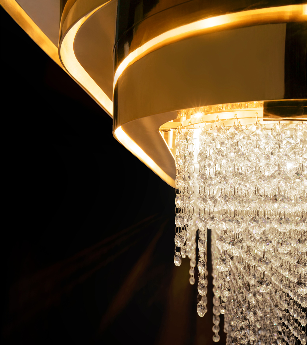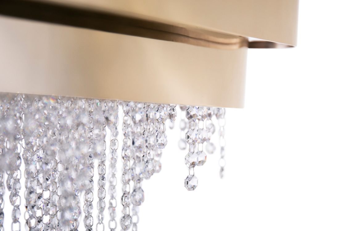 The Guggenheim Snooker Suspension is a design inspired by leading-edge architecture. This piece can galvanize diverse rooms and is the perfect complement to any innovative and luxurious design. Made with gold-plated brass and clear crystals and bold by definition, this piece is a promising focus of attention.