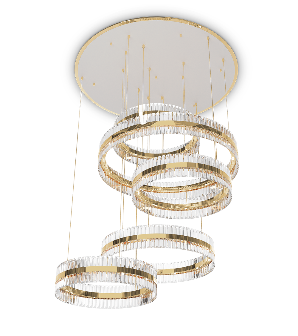 The Liberty Slim Chandelier introduces a new sense of sophistication to the collection with its unique design. Each round gold-plated brass fixture is complete with crystal glass and will leave a lasting impression on all who behold it in a grand foyer, a luxurious living room, or an opulent ballroom.
