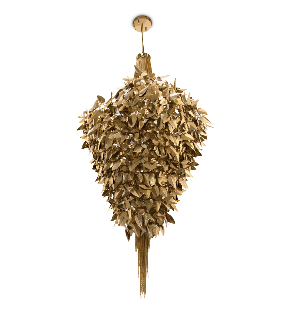The McQueen II Chandelier is born from nature’s elements that have always inspired this bold and romantic collection. As an homage to the late fashion designer and his bold statements, the gold-plated brass chandelier features handmade brass leaves and is finished with Ambar crystals. A savage beauty that embodies the ultimate expression of luxury.