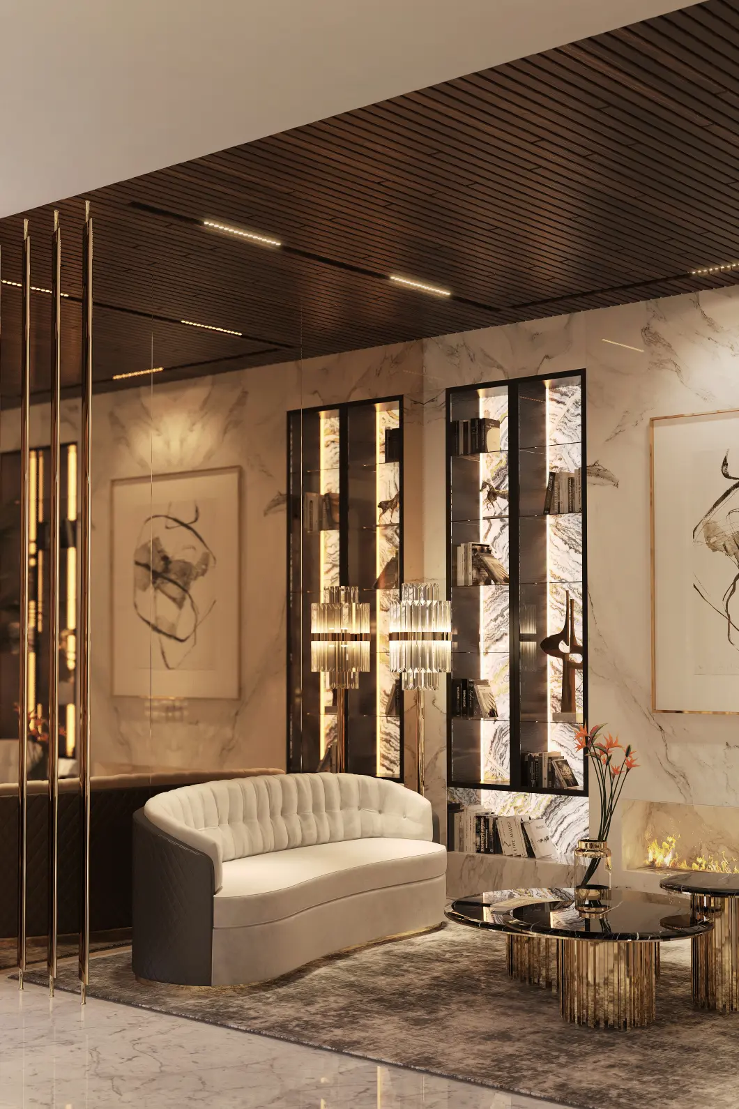 Standard Finishes Body: Polished brass, Gray leather & Gray velvet