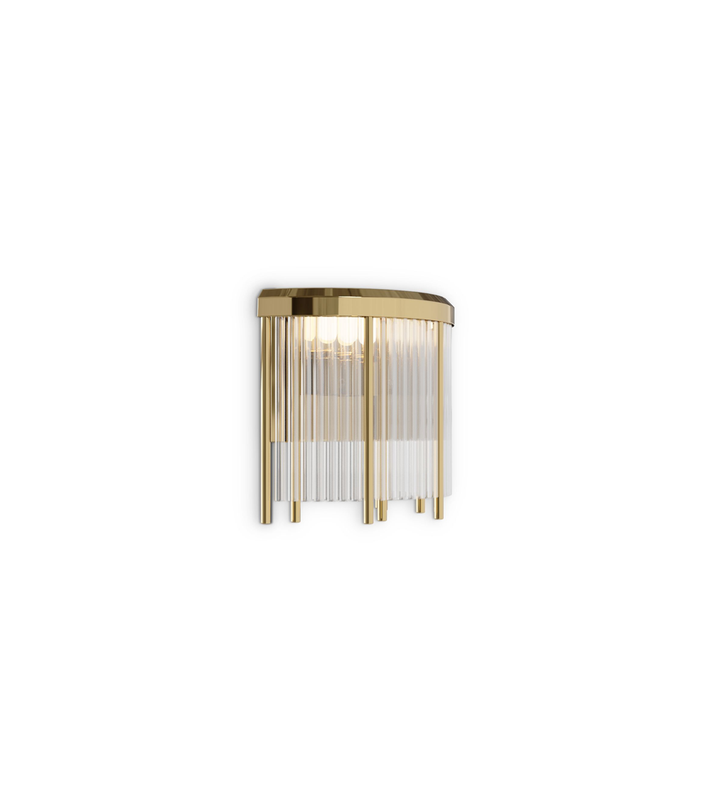 Part of the Pharo lighting collection, the Pharo III Small Wall has a striking architecture that will transform any hallway lighting or living room decor. This crystal wall lamp also features gold-plated brass details.