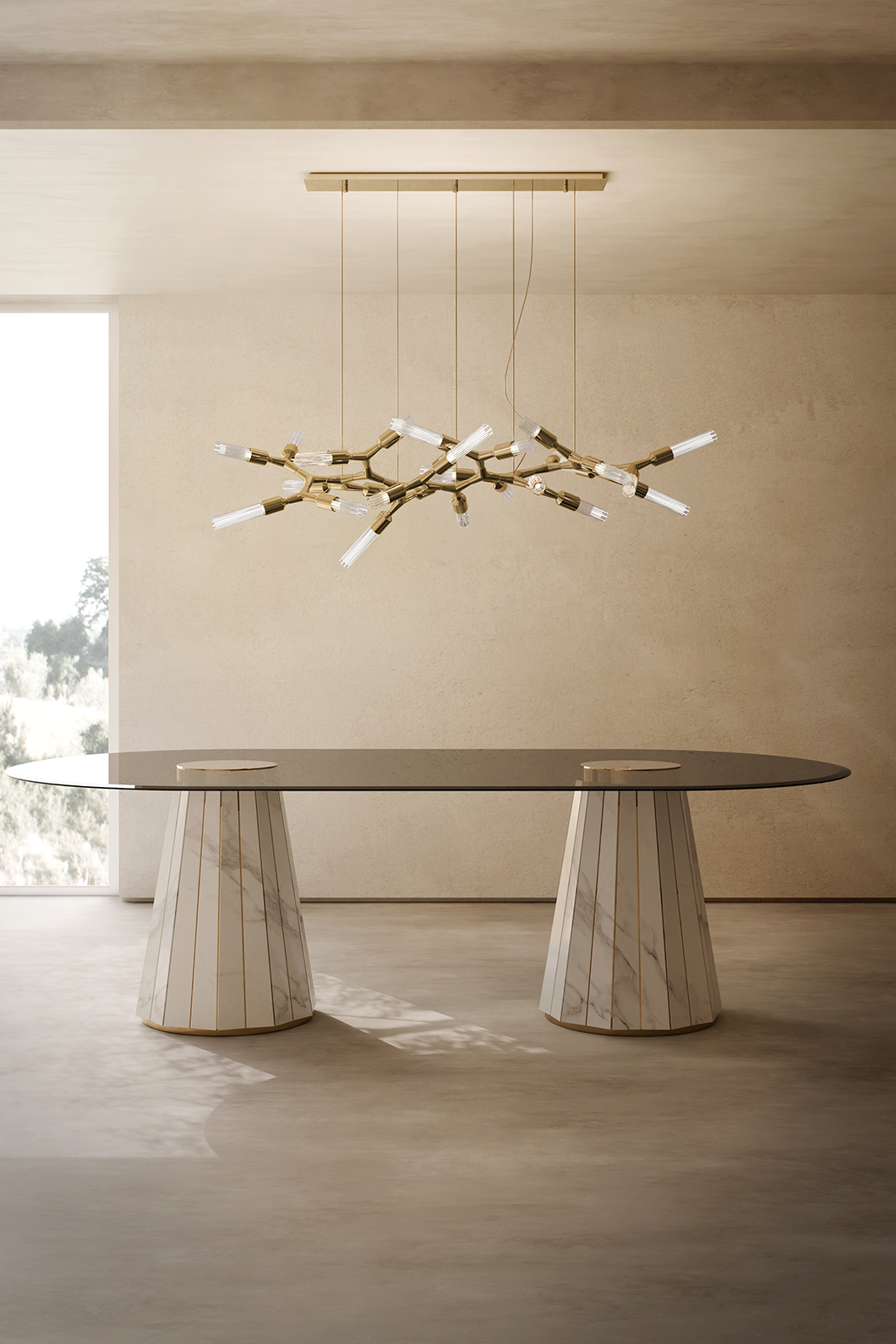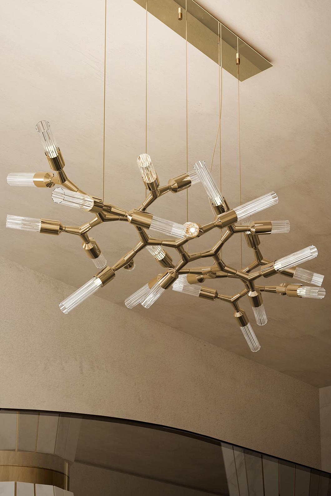 Following the same structure as its counterpart, the Shard II suspension pays homage to the iconic architecture of the Shard London Bridge. Its strong presence is achieved through crystal glass and brass details, making it an eye-catching piece suitable for living and dining room areas.