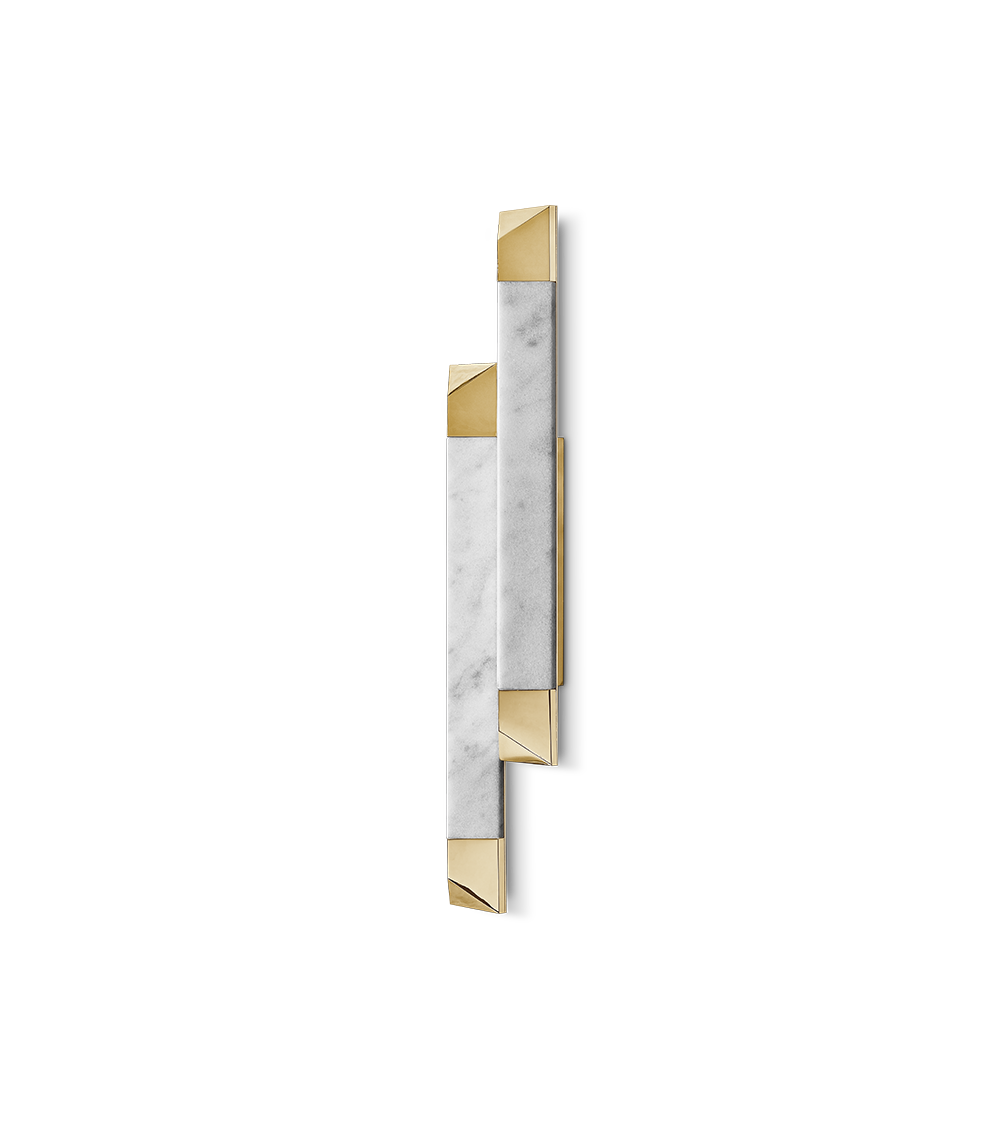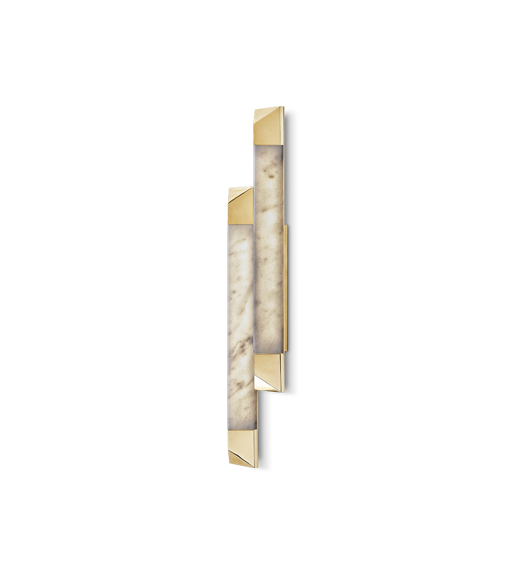 Inspired by ancient Rome, the Spear II Wall Lamp is a timeless design that combines strength and elegance. The contrast between the gold-plated brass and the Ibiza marble creates a striking visual effect that elevates this wall light design, making it a true work of art. Ideal as accent lighting or to complete any interior decor.