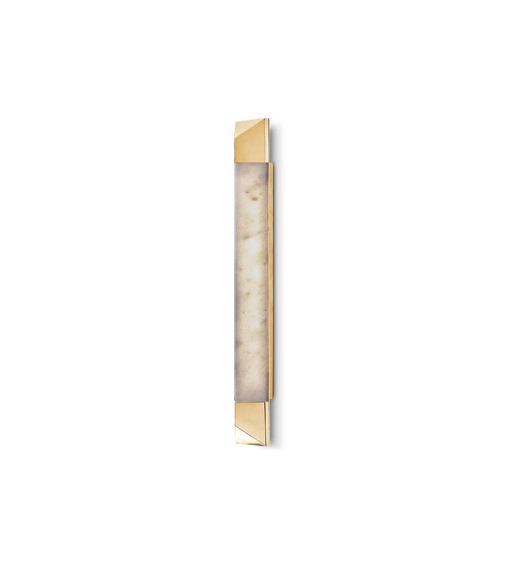 The Spear Wall Lamp is a modern masterpiece that draws inspiration from the grandeur of ancient Rome. Its simple design beautifully contrasts the purity of Ibiza marble with gold-plated brass. This stylish wall light is the perfect choice to complete a lighting scheme or highlight specific areas as an accent piece.