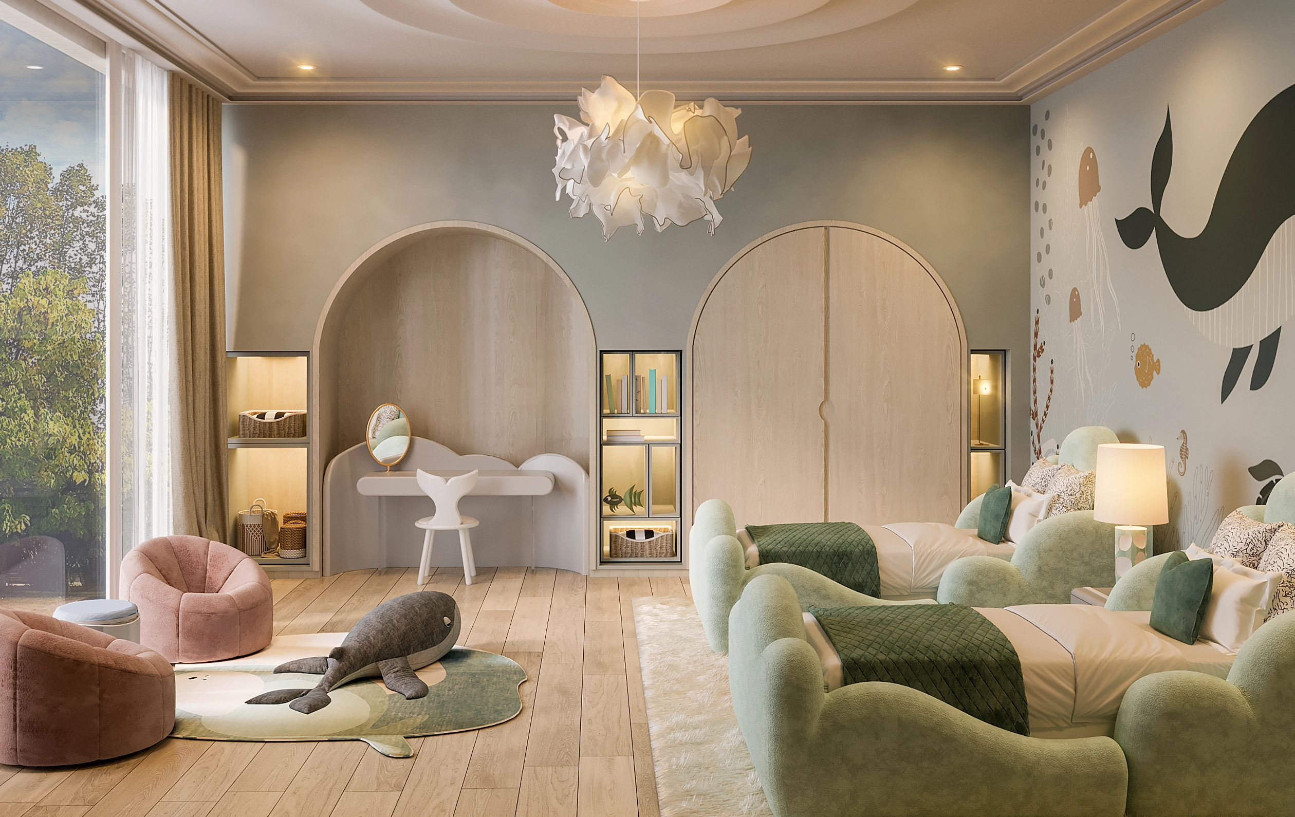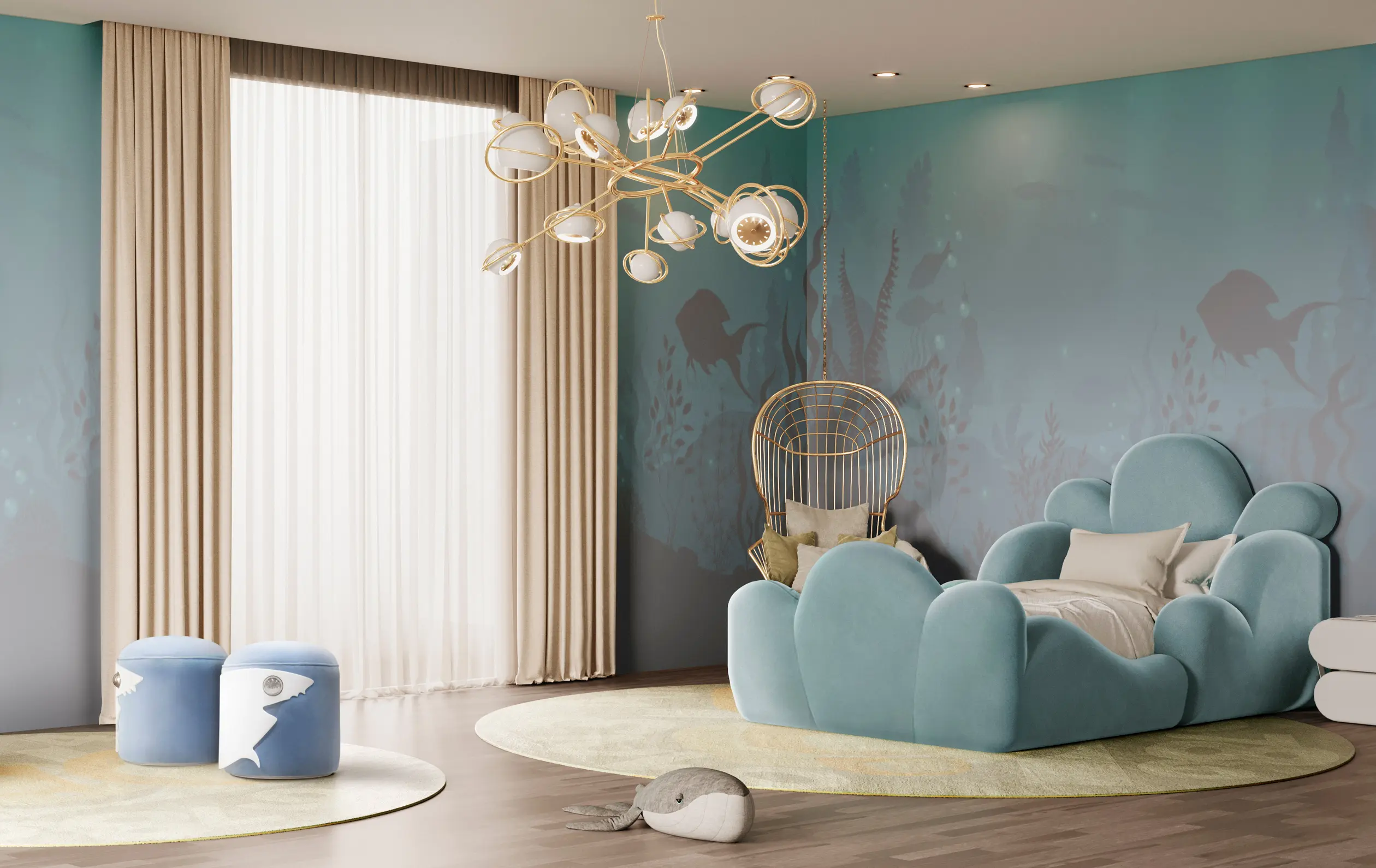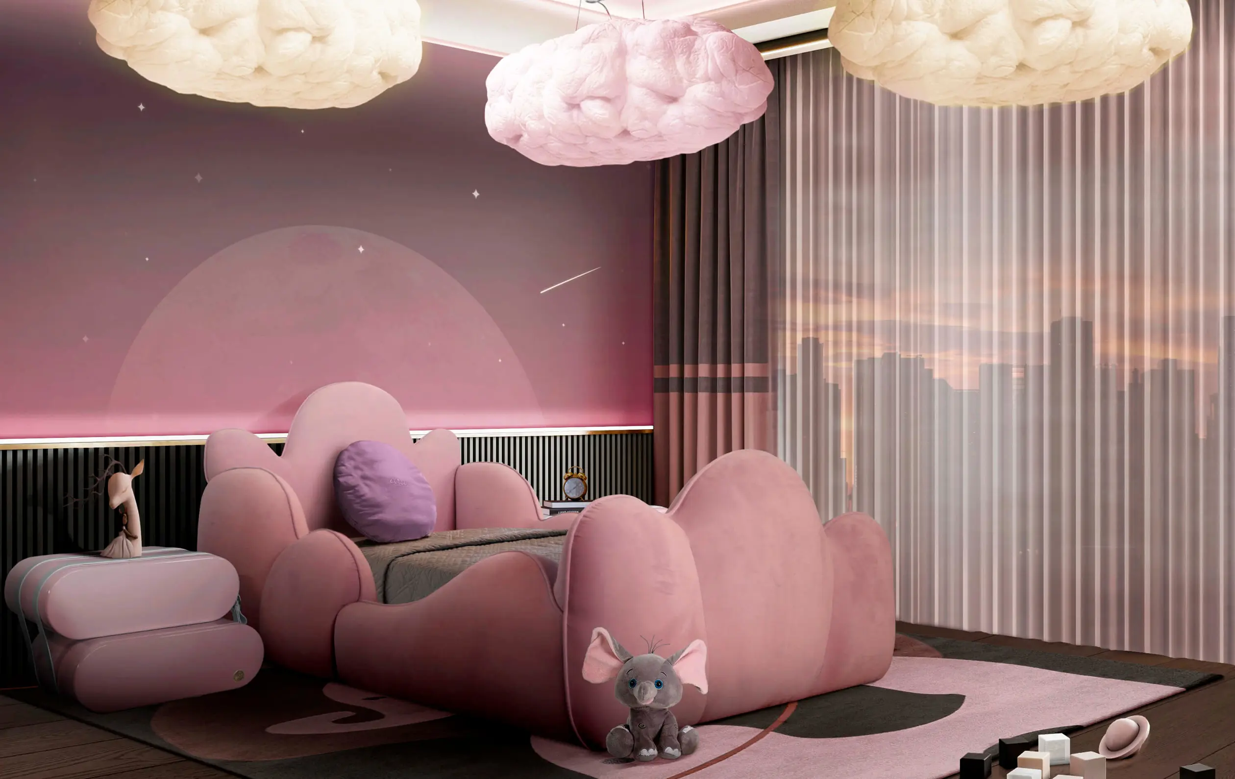 Inspired by the movie Atlantics, Circu presents the one-of-a-kind Tristen Bed, meticulously crafted to shape comfort and safeguard your little one's dreams as they embark on nightly journeys through their imagination. Constructed with the finest materials, including wood and soft velvet, the Tristen Bed is a kingdom ready to find its place in your bedroom project and become an integral part of your child's life.