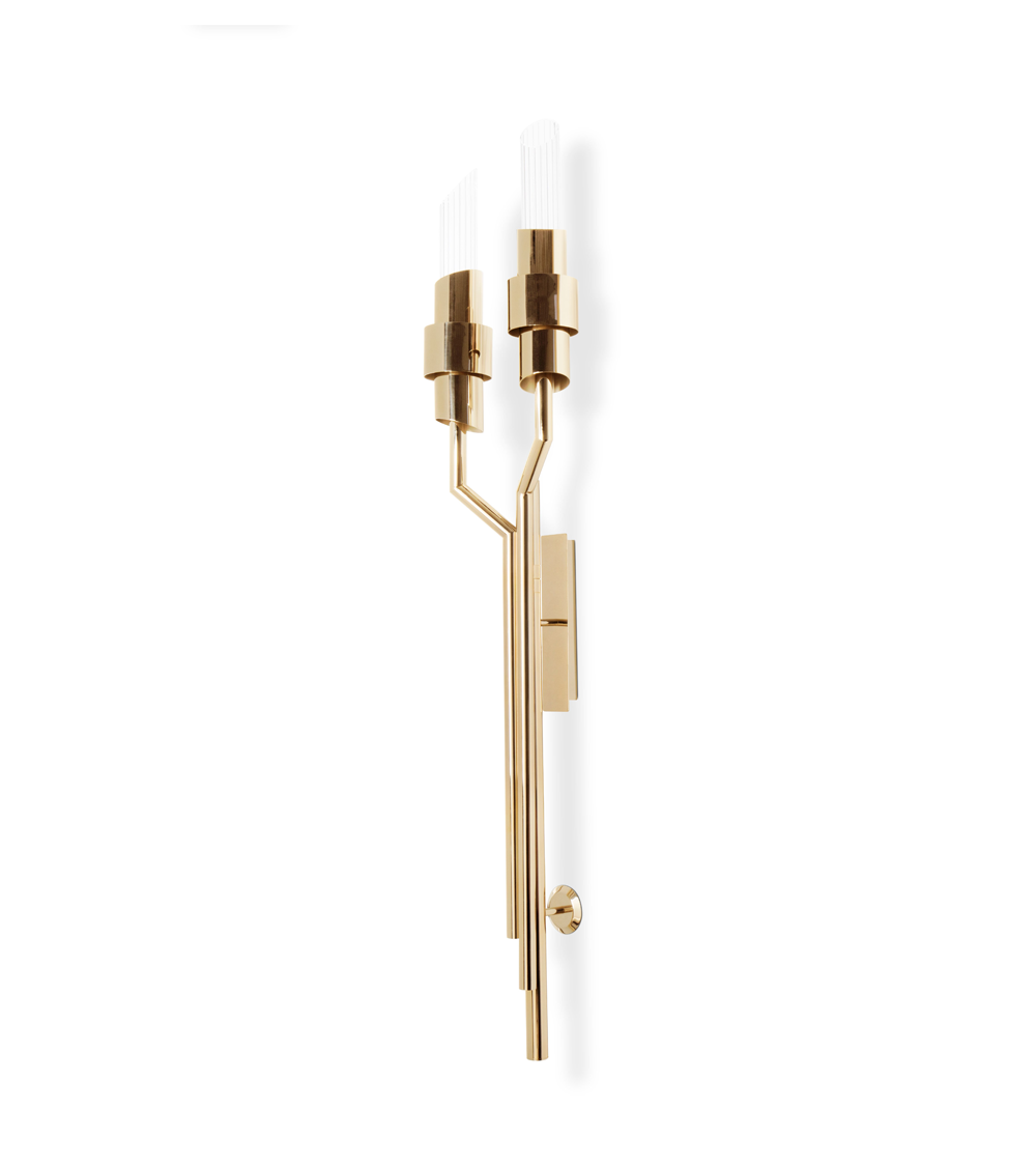From the classical to the most contemporary ambience, this torch-wall light from the Tycho collection is the epitome of elegance and distinctiveness. A perfect fit for both hospitality and residential projects, the combination of brass and ribbed crystal glass will give any project the final twist of medieval charm you were looking for.