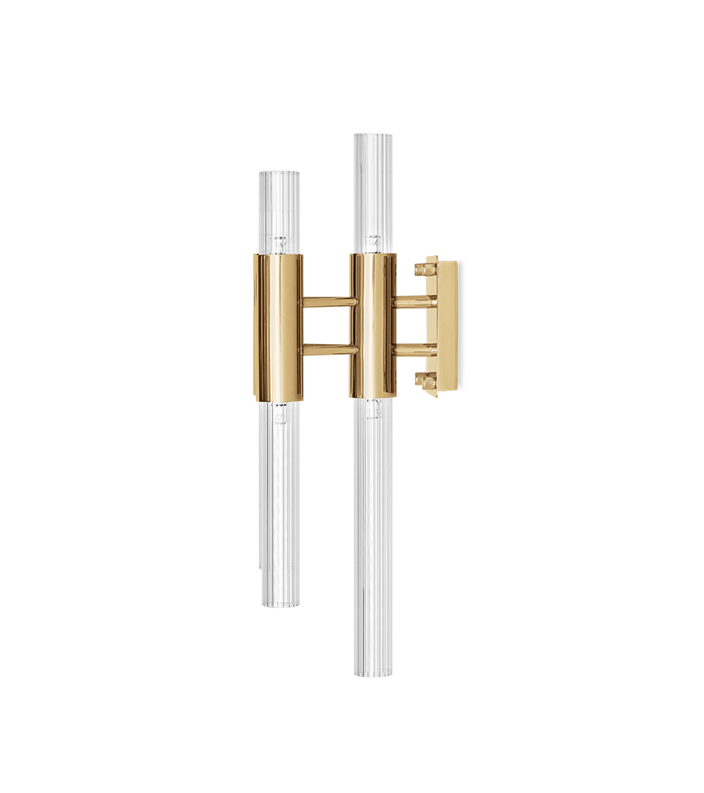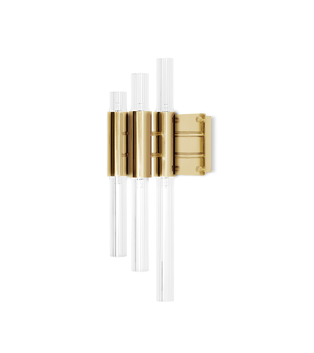 This best-selling luxury wall light infuses any interior decor with the natural sensation of waterfalls with its elegant and modern design. Made from gold-plated brass and adorned with crystal glass tubes, the Waterfall Wall Lamp adds a touch of sophistication to any wall it embellishes, whether for a commercial project or a residential one.
