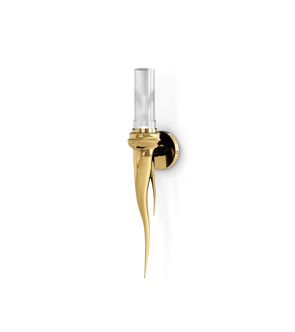 A classical wall fixture that will transform any interior decor with its contemporary approach. The Wax Small Wall Lamp is composed of a delicate tube of handmade crystal glass and gold-plated brass, and it’s shaped in a unique way that conveys an old-classic luxury feel as its collection. The perfect accent for deluxe wall lighting.