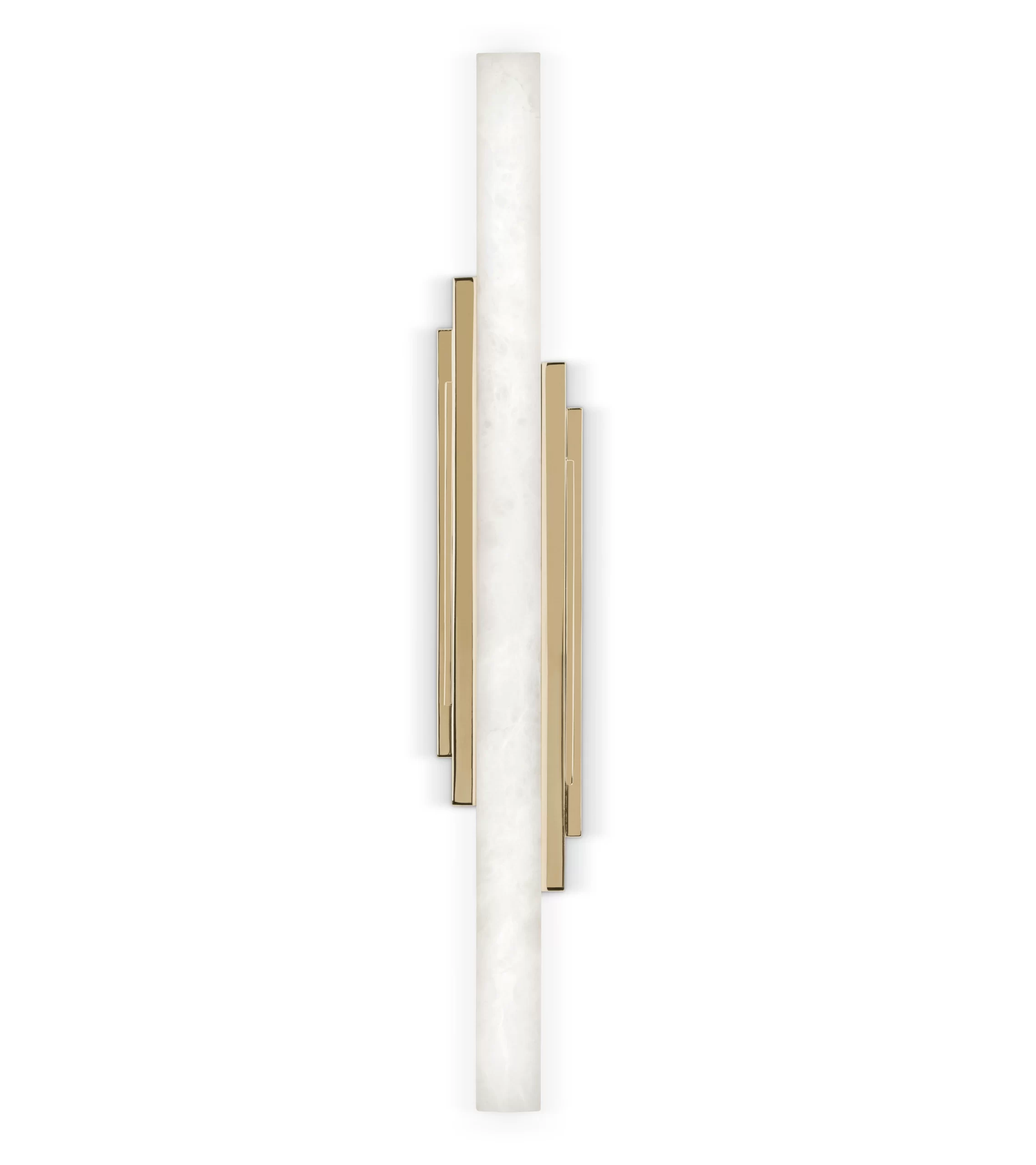 Inspired by the striking silhouette of skyscrapers illuminated at night, the Skyline Big Wall Lamp transforms urban architecture into a bold lighting statement. Crafted with refined alabaster and gold-plated brass, this wall fixture reveals a soft, ambient glow that enhances its sculptural presence. With a simple yet distinctive aesthetic, Skyline Big adds architectural elegance and timeless sophistication to any interior project or home décor.