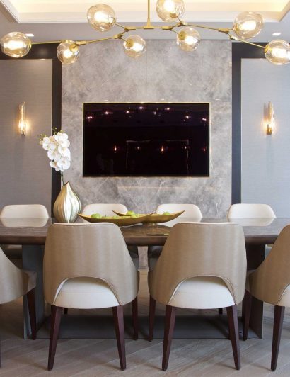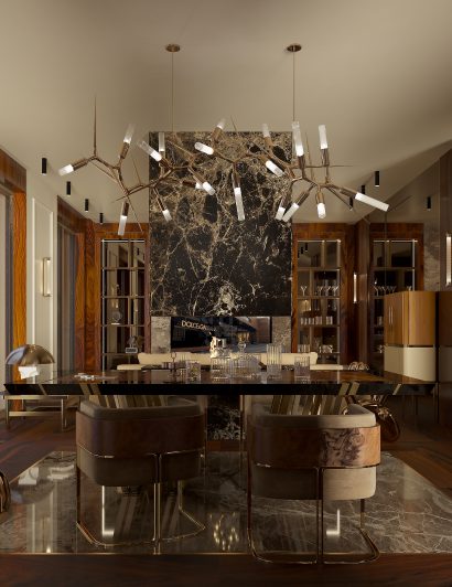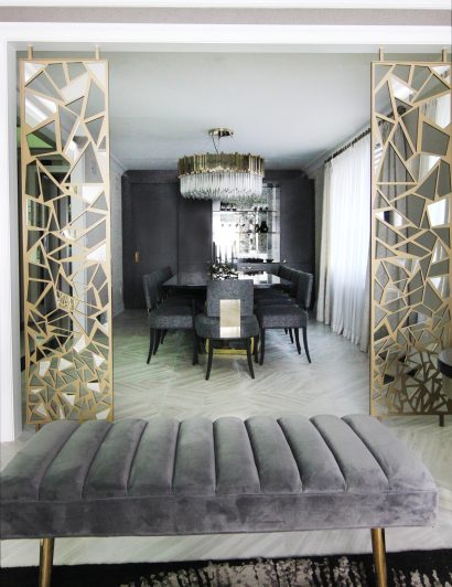 Stylish Reception Area With Golden Accents - Marble and golden details make this reception area an ode to luxury. F