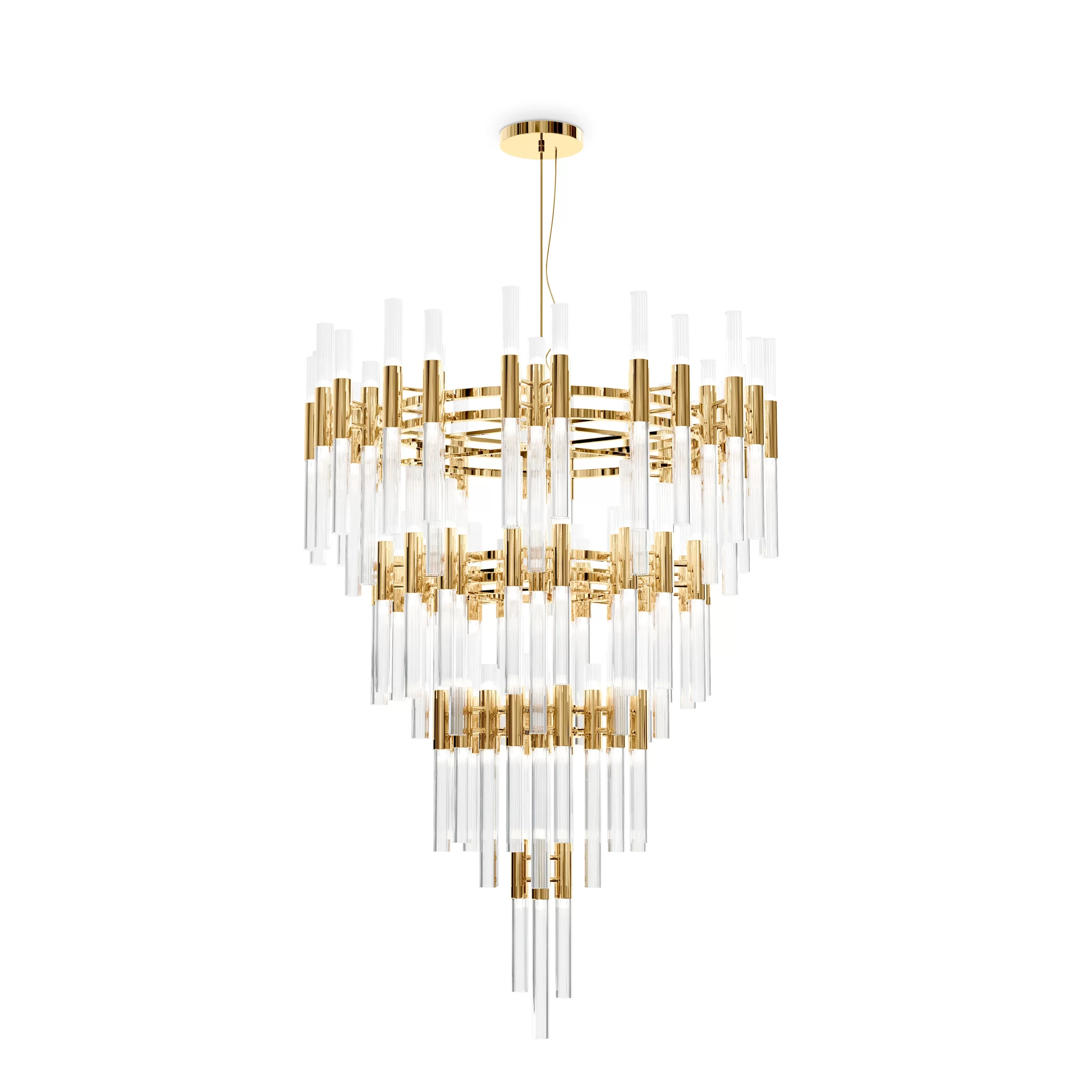 At the core of Waterfall II Big’s allure are its premium materials. The gold-plated brass structure provides a warm, luxurious foundation, while the handmade crystal tubes introduce brilliance and texture. Each crystal element is meticulously crafted to reflect and refract light, creating subtle sparkles and depth. This combination of noble materials results in a lighting piece that feels timeless and exclusive, where craftsmanship is evident in every detail.
