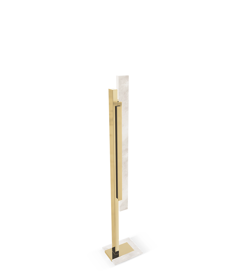 The Skyline Floor Lamp adds a new dimension to floor lighting with its design inspired by the silhouette of skyscrapers. A unique and minimalistic aesthetic made with alabaster and gold-plated brass that will complement any interior decor.